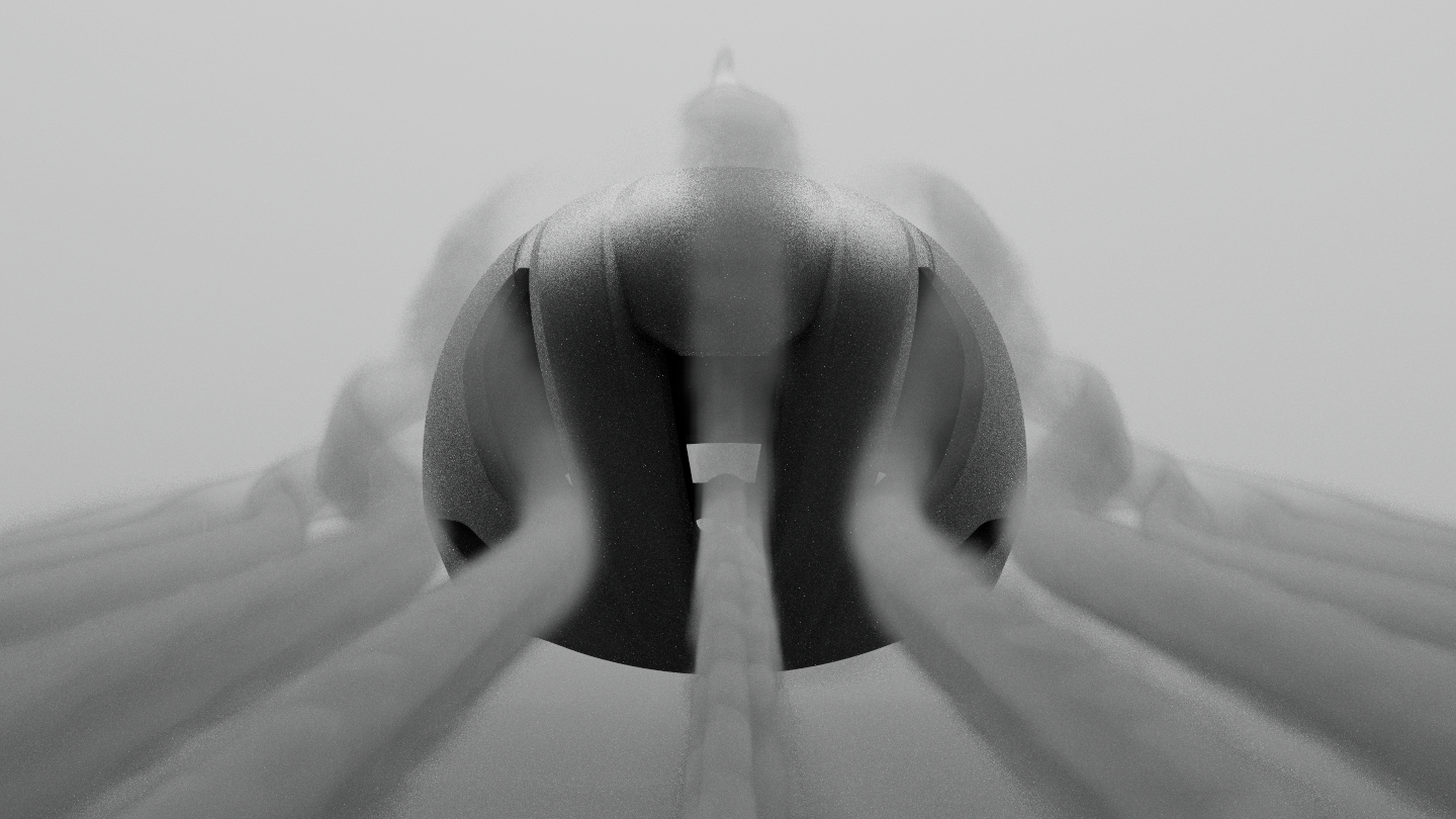With the air-tunnel smoke sim already locked in place, we faced some serious constraints in how the helmet could be animated so in the end, we decided to revamp the camera with snappier moves and match-cuts throughout. Animated lights were also key in conveying a high-energy feel for the Evade model.